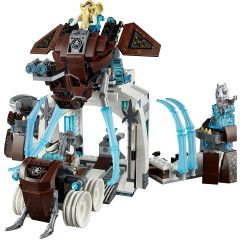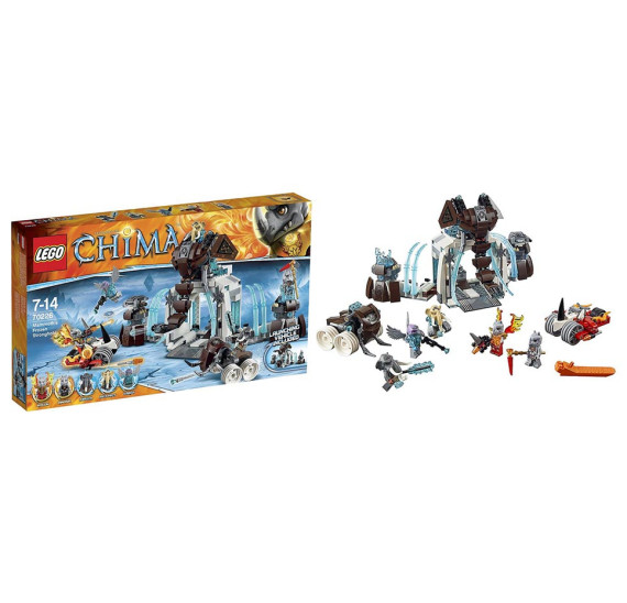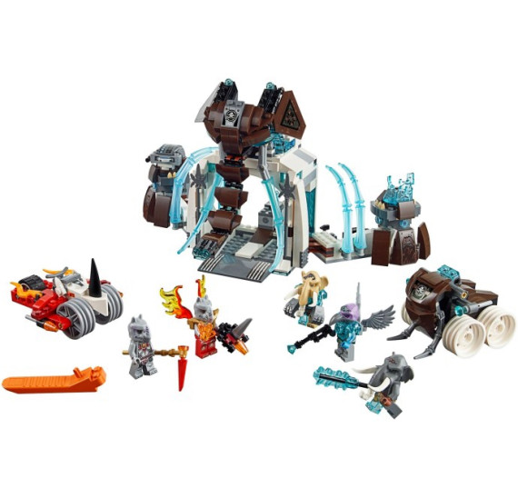 Rinona byla polapena mamutím kmenem a je držena v ledové pevnosti. Zachran ji s Rogonem a jeho silným nosorožím vozidlem - ale pozor: Mamuti jsou moc dobře vyzbrojeni a budou svou pevnost bránit hlava nehlava. Především si musíš dávat pozor na rotující diskovou zbran! Udělej velký rozruch, ale pozor na vozidlo s kly - Mottrot spustí narážecí funkci, aby převrhl tvé nosoroží vozidlo. Když se dostaneš do pevnosti, zmocni se CHI krystalu, osvobod Rinonu z ledové věže a prchněte! Součástí jsou 5 minifigurek s různými zbraněmi a doplnky: Rinona, Maula, Mottrot, Vardy a Rogon